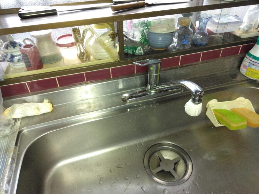 豊中市 S様邸 キッチン水栓取替工事 流し台用シングルレバー式混合栓 KM5091TEC 2025年12月