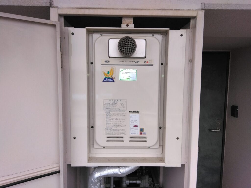 伊丹市 団地 K様邸 給湯器取替工事 リンナイ 高温水供給式 PS扉内設置型 16号 RUJ-A1610T-L(A) 2026年2月