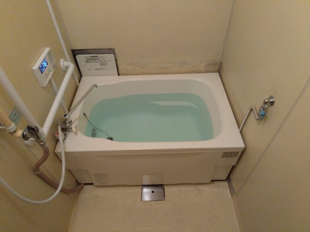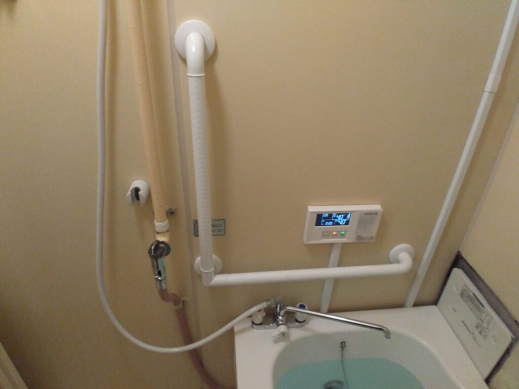 川西市 T様邸 給湯器・浴槽・シャワー水栓取替手すり取付工事 ハウステック 壁貫通型給湯器 16号 フルオートWF-1613AT 浴槽 HK-1172 リクシル BF-M607H-GA TOTO TS136GLU66#NW1 2026年3月